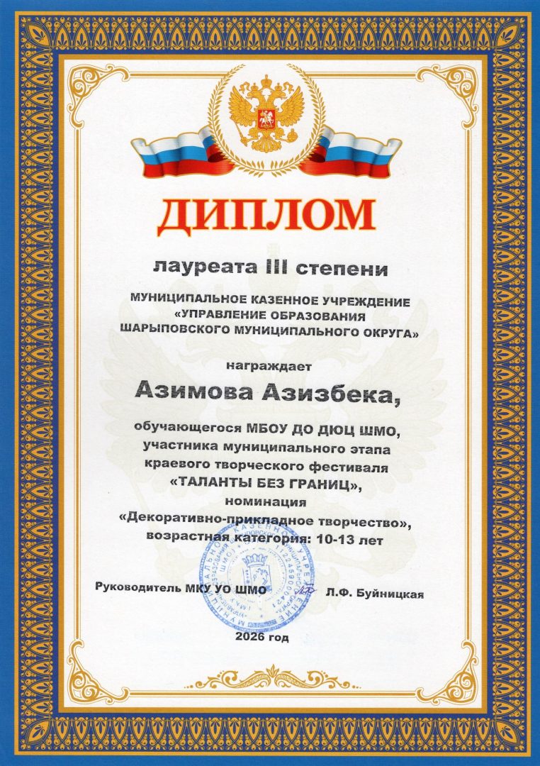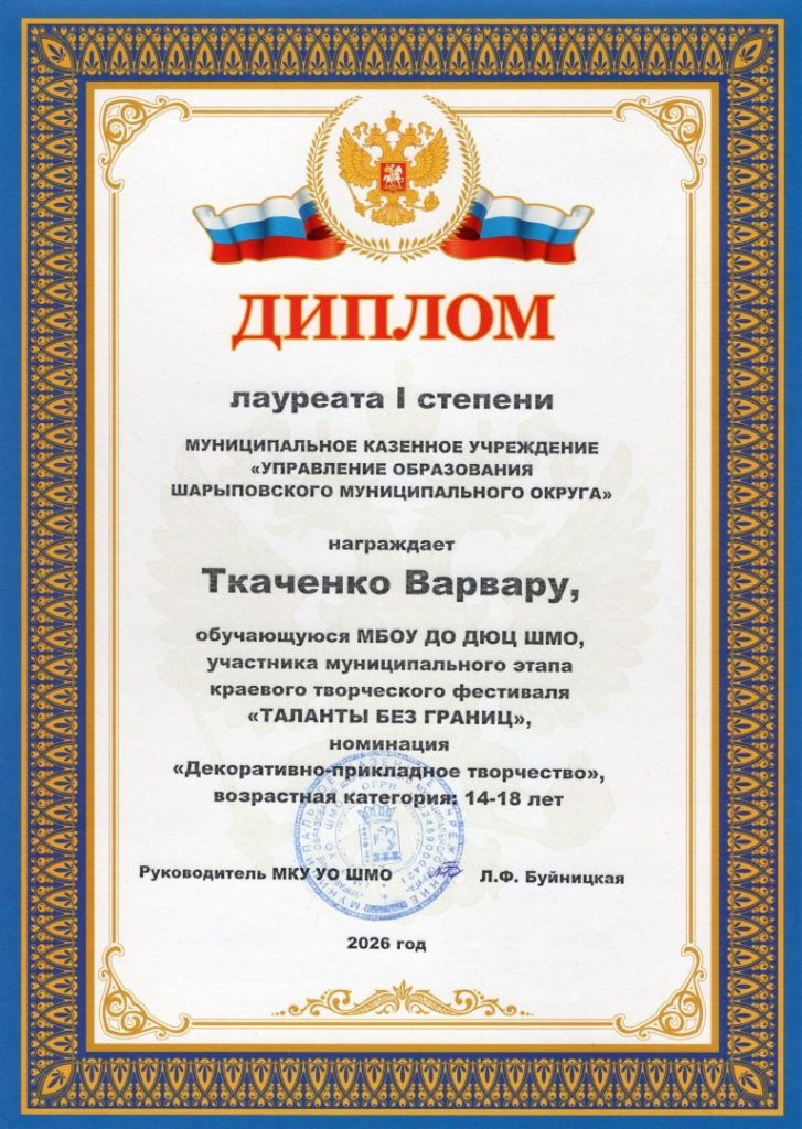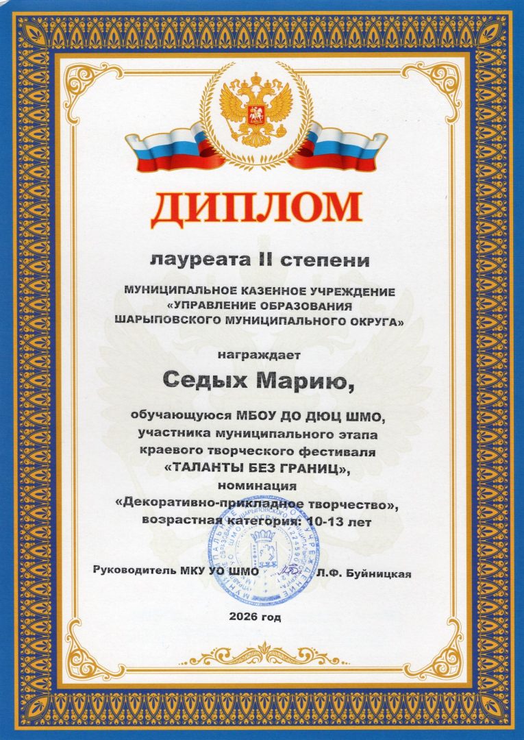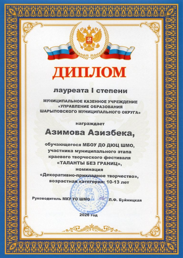 Муниципальное бюджетное образовательное учреждение дополнительного образования Шарыповского муниципального округа Детско-юношеский центр