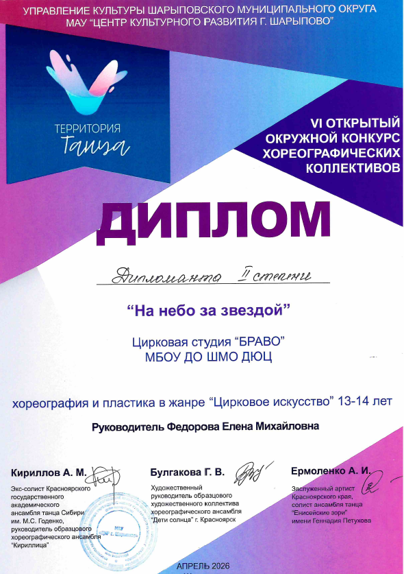 🥈 Номер «На небо за звездой» — дипломант 2-й степени.
